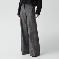 Please enter your email below to be notified when this item is in stock This wide-leg pant features a mid-rise fit and fluid drape that moves with ease. It’s tailored with subtle structure through the waistband with soft creasing creased for a refined finish. Made in Italy, the fabric is crafted using wool that is sourced from certified responsibly managed farms. Style #: P1101204 Please enter your email below to be notified when this item is in stock Fit True to size, choose your normal size Mid rise, wide leg Full length Model is 5’11” and wearing a US size 2 Materials & Care Composition 83% virgin wool 17% polyamide Care Do not wash. Do not bleach. Do not tumble dry. Cool iron if needed. Dry clean with any solvent except trichloroethylene. Imported
