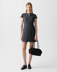 Please enter your email below to be notified when this item is in stock A tailored mini dress with utilitarian edge. This structured style features a zip-front, angled welt pockets, and vertical seams for definition. It’s crafted with Good Wool with a hint of stretch for a relaxed feel. Theory for Good Theory’s Good Wool is crafted with premium merino wool. It’s sourced from certified responsibly managed farms in Australia, and woven by the Tollegno 1900 mill in Biella, Italy. Learn more about our Good Wool. Style #: P0801601 Please enter your email below to be notified when this item is in stock Fit True to size, choose your normal size Slim fit, cap sleeves Mini length Model is 5’11” and wearing a US size 2 Materials & Care Composition 96% wool 4% elastane Care Do not wash. Do not bleach. Do not tumble dry. Cool iron if needed. Dry clean with any solvent except trichloroethylene. Imported