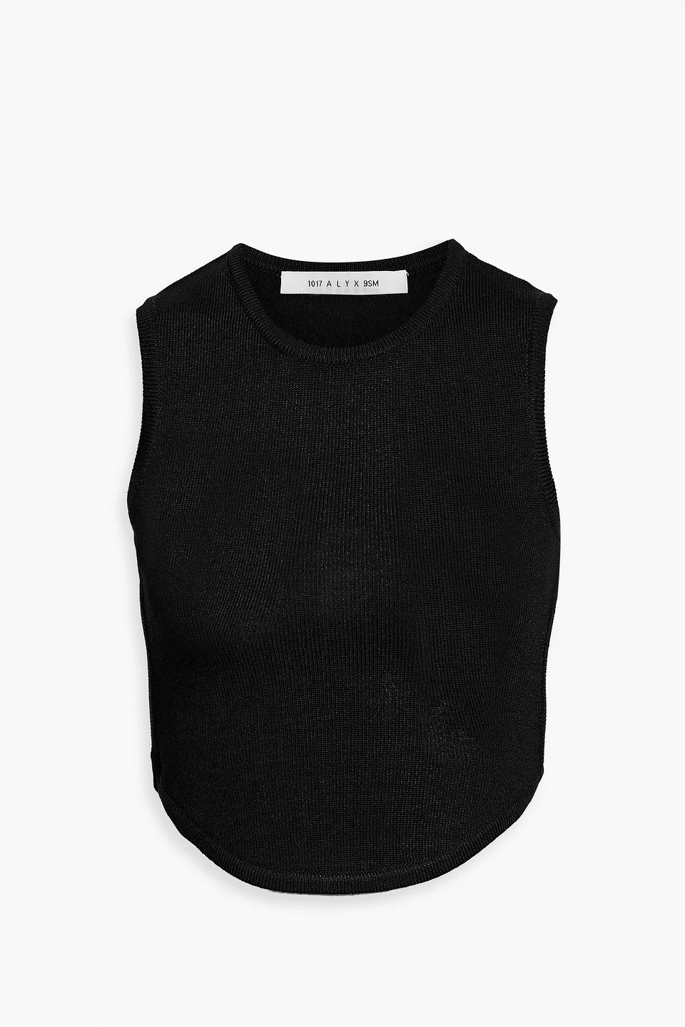 Top knitted leather trims cropped push-stud fastening at waist stretchy fabric mid-weight knit dry clean made in italy 83% Viscose 17% Polyamide Product Code 1647597284993283