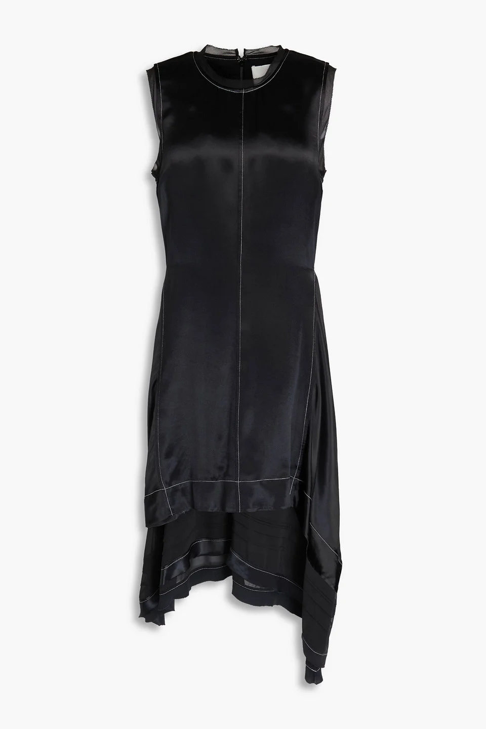 Dress satin crepe de chine layered asymmetric hem concealed hook and zip fastening at back mid-weight, slightly stretchy fabric dry clean imported 100% Viscose Product Code 46376663162866448