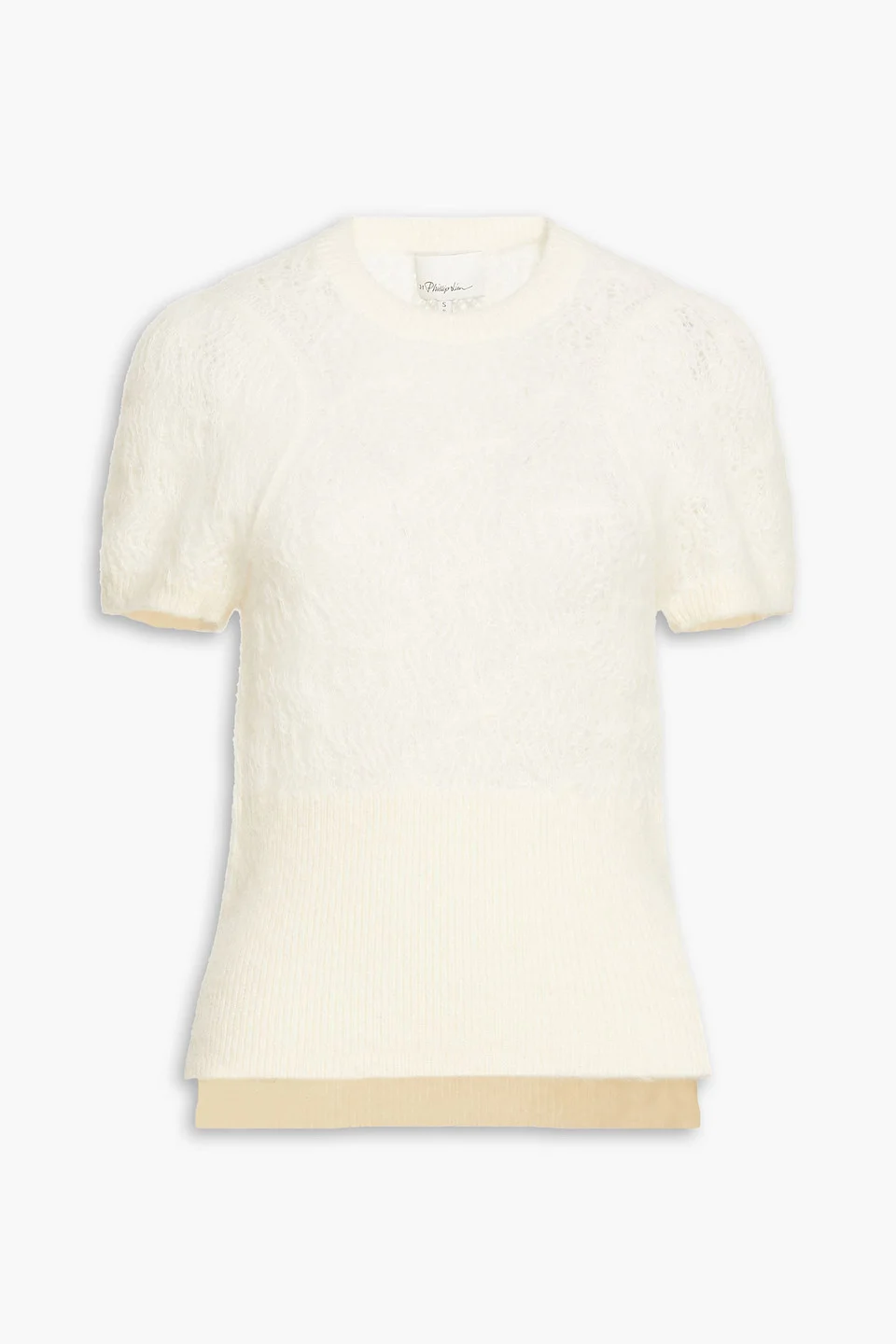 Top pointelle-knit alpaca-blend brushed ribbed trims side slits slips on mid-weight knit hand wash or dry clean imported 60% Alpaca wool 33% Polyamide 7% Wool Product Code 1647597291654648