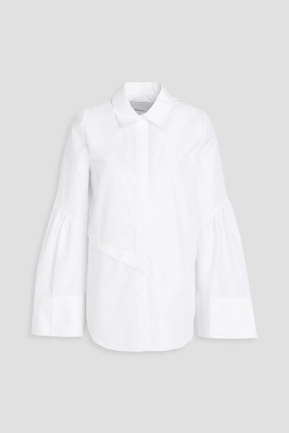 Shirt poplin cotton-blend button-detailed bell sleeves buttoned cuffs side slits partially concealed button fastenings through front mid-weight, non-stretchy fabric dry clean imported 70% Cotton 30% Polyester Product Code 1647597352275821
