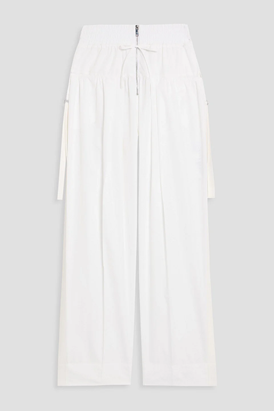 Wide-leg pants cotton-blend canvas trims pleated side slant pockets elasticated drawstring waist high-rise cut zip fastening along front mid-weight, non-stretchy fabric dry clean imported 70% Cotton 30% Polyester Product Code 46376663163057731