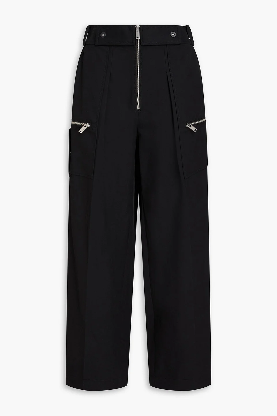 Wide-leg pants cotton-blend pockets partially elasticated waist belt loops high-rise cut zip fastening along front mid-weight, non-stretchy fabric dry clean imported 55% Cotton 45% Viscose Product Code 46376663163098125