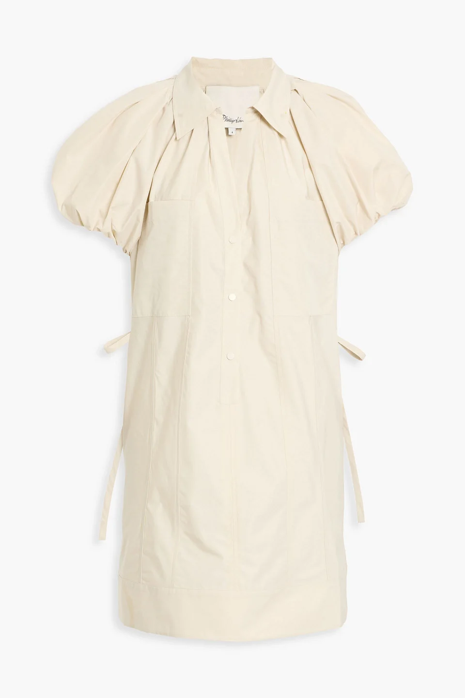 Shirt dress cotton-blend poplin waist ties puffed sleeves breast pockets side slit pockets side slit hemline snap fastenings along front mid-weight, non-stretchy fabric dry clean imported 70% Cotton 30% Polyester Product Code 46376663163058922