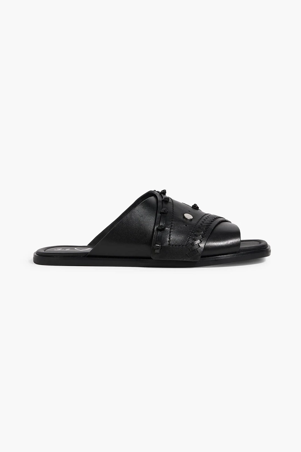 Sandals leather studded cutout open square toe slight heel slip on rubber sole imported 100% Bovine leather Product Code 46376663163000957