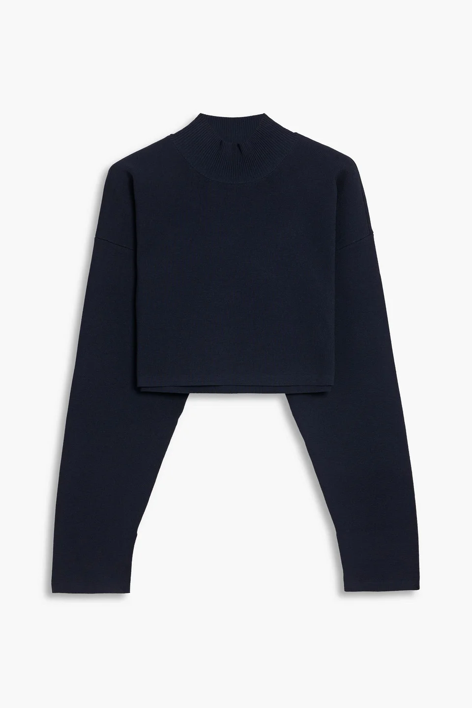 Turtleneck top stretch-knit cropped slips on mid-weight knit dry clean imported 61% Viscose 20% Nylon 15% Polyester 4% Elastane Product Code 46376663163057748