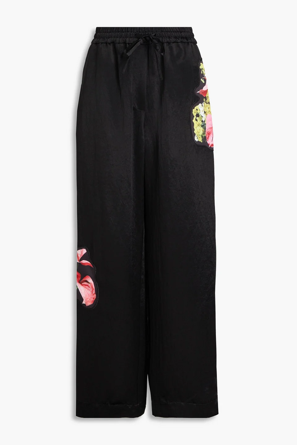 Wide-leg pants floral-print satin elasticated drawstring waist high-rise cut pull on mid-weight, non-stretchy fabric dry clean imported 100% Acetate Product Code 1647597352393706