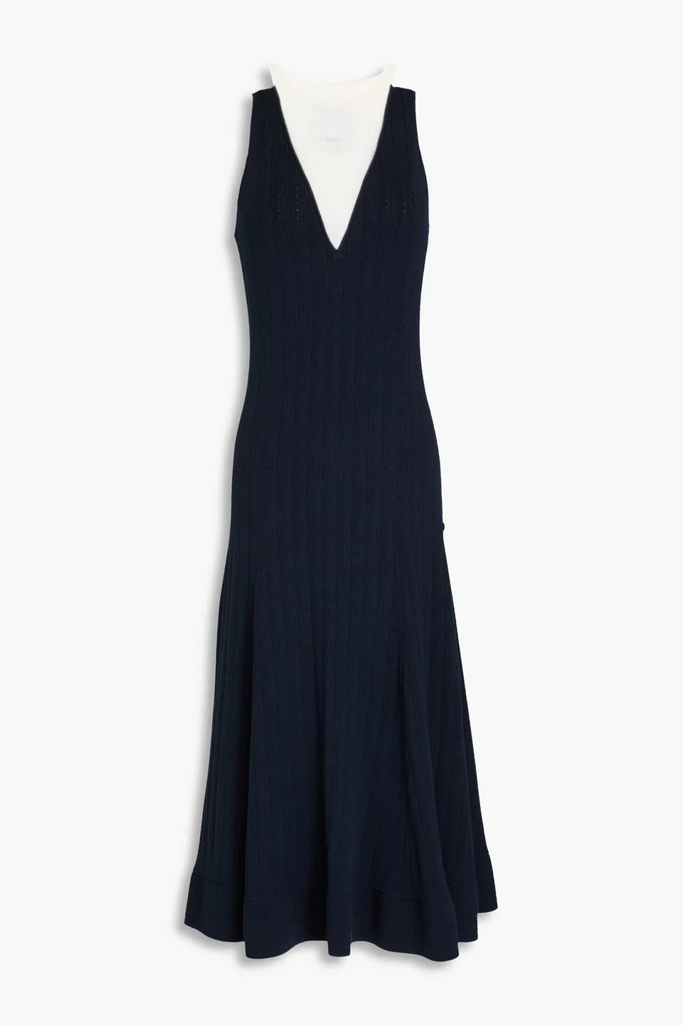 Layered waffle-knit and ribbed Lyocell-blend midi dress
