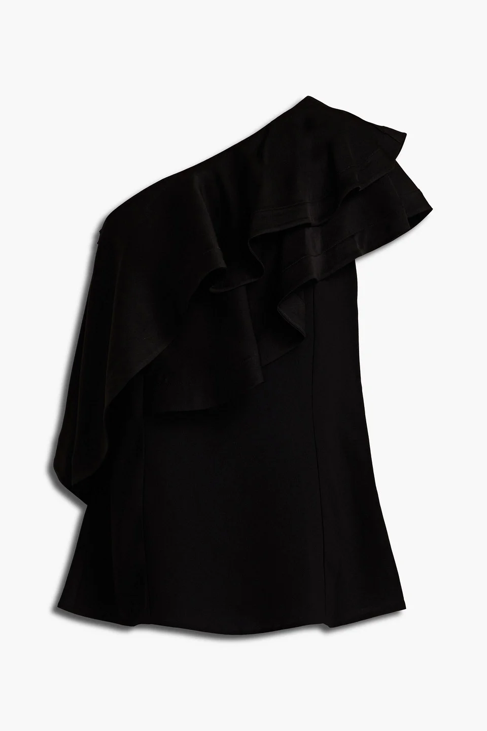 One-shoulder top satin-crepe crepe paneled ruffled concealed hook and zip fastening at side non-stretchy fabric mid-weight fabric dry clean imported 64% Acetate 27% Viscose 9% Polyester Product Code 1647597277932305