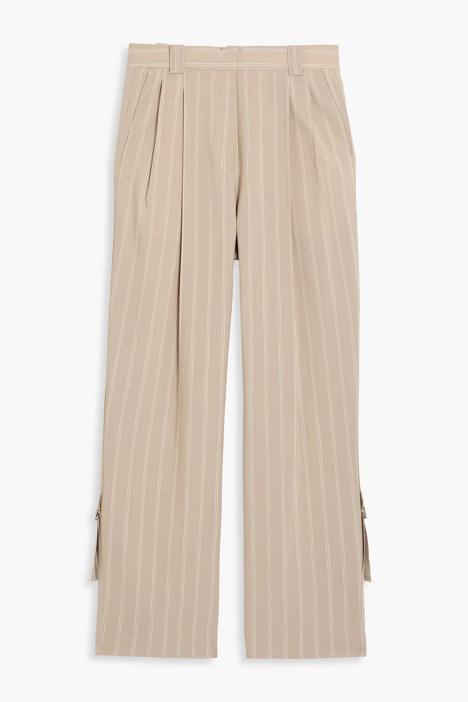 Straight-leg pants pinstriped woven pleated front slant pockets back welt pockets belt loops high-rise cut concealed hook, button and zip fastening at front mid-weight, non-stretchy fabric dry clean imported 46% Viscose 28% Polyester 23% Wool 3% Elastane Product Code 46376663163057742