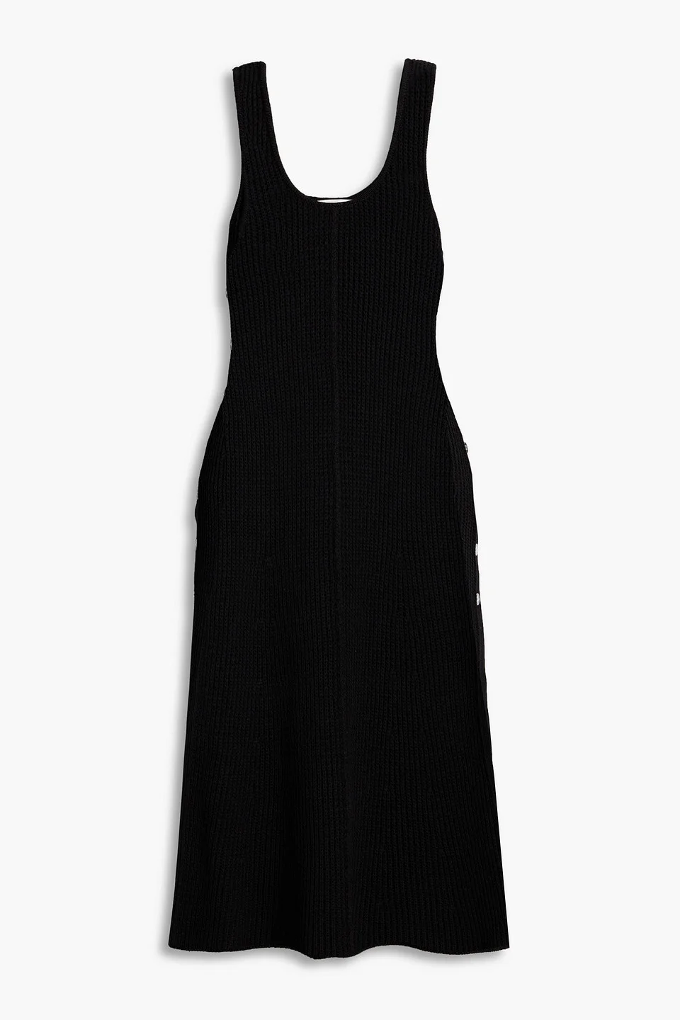 Dress cotton-blend ribbed button-detailed fluted hem slips on mid-weight knit dry clean imported 89% Cotton 11% Polyester Product Code 1647597360024899