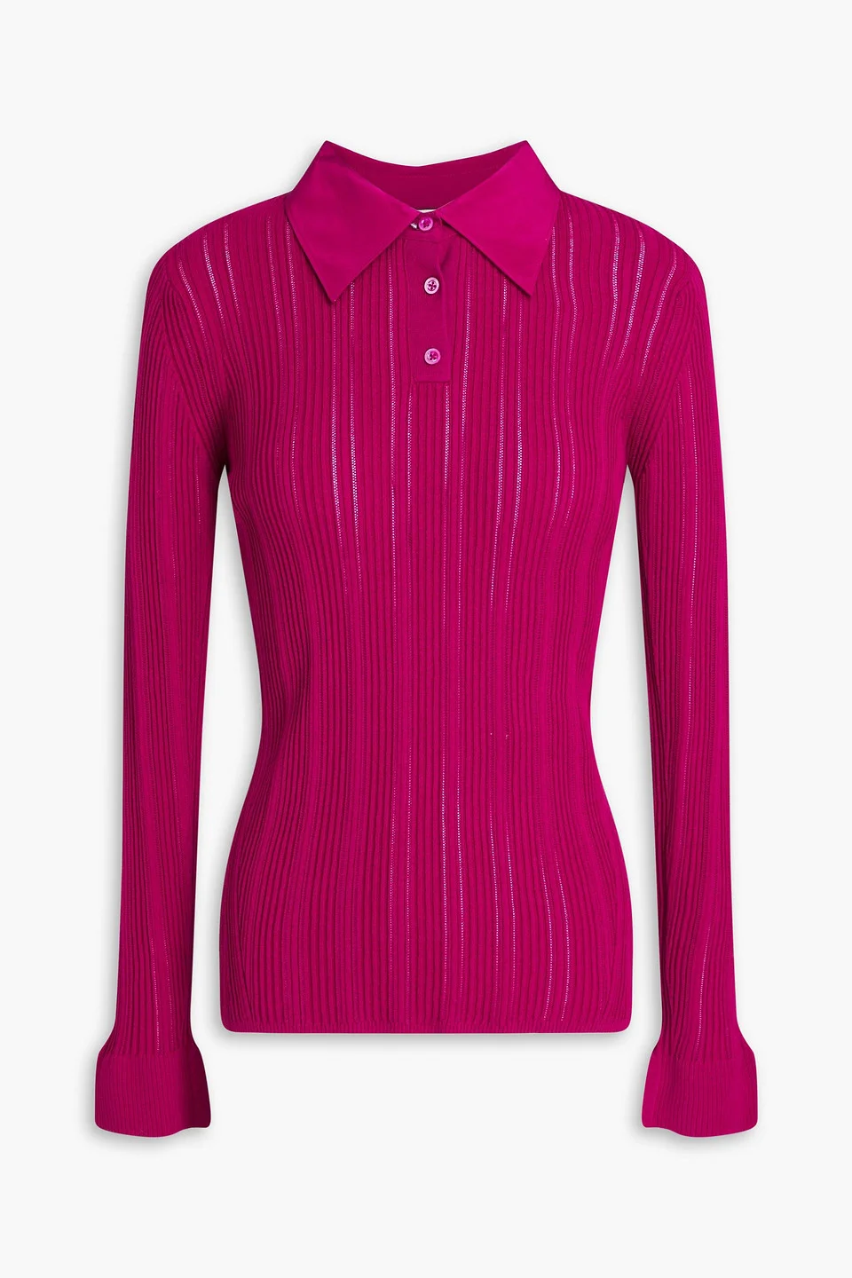 Polo shirt cotton-blend ribbed crepe de chine trims pointelle trims slit cuffs button fastenings along front lightweight knit dry clean imported 50% Cotton 37% Nylon 7% Elastane 6% Polyester 0% Silk Product Code 1647597347110120