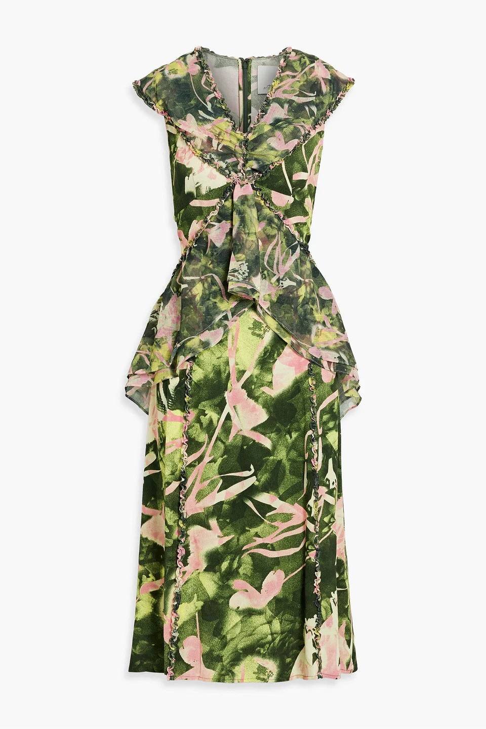 Dress floral-print georgette crepe paneled ruffled front slit concealed hook and zip fastening at back mid-weight, non-stretchy fabric dry clean imported 100% Viscose Product Code 1647597356355304