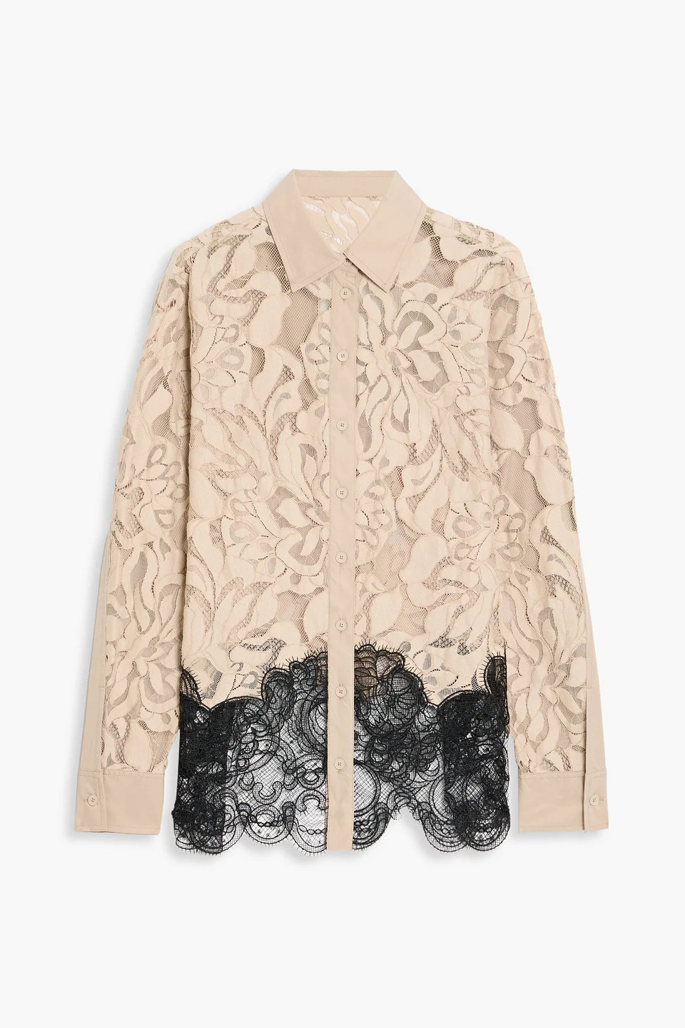 Shirt two-tone corded lace woven trims buttoned cuffs button fastenings through front mid-weight, non-stretchy fabric dry clean imported 48% Cotton 47% Polyamide 5% Elastane Product Code 46376663163057744
