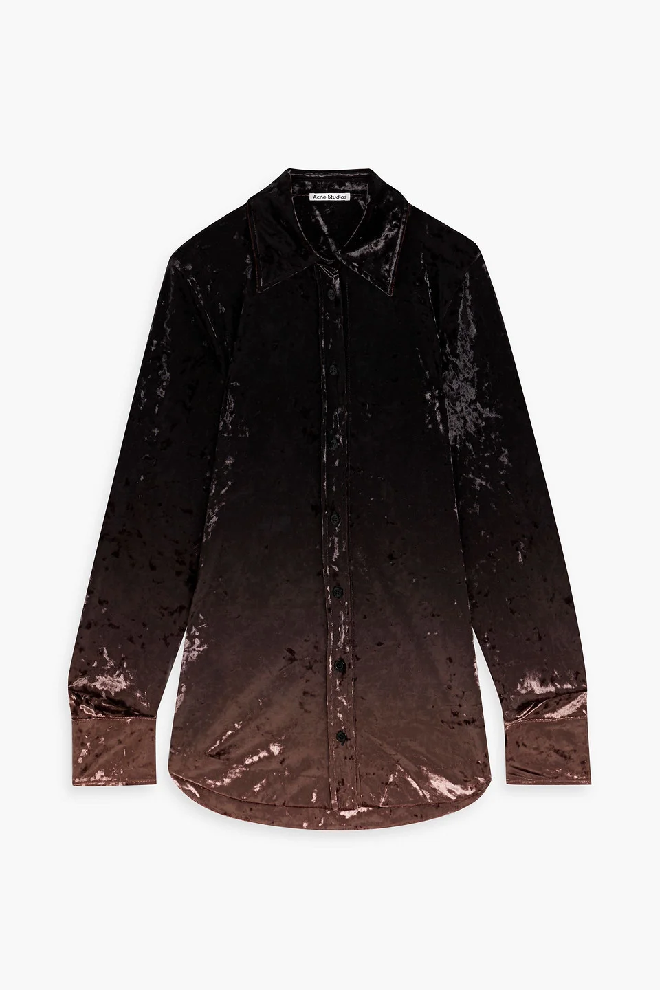 Shirt degrade crushed-velvet buttoned cuffs button fastenings through front mid-weight, non-stretchy fabric hand wash or dry clean imported 90% Polyester 10% Elastane Product Code 1647597356342191