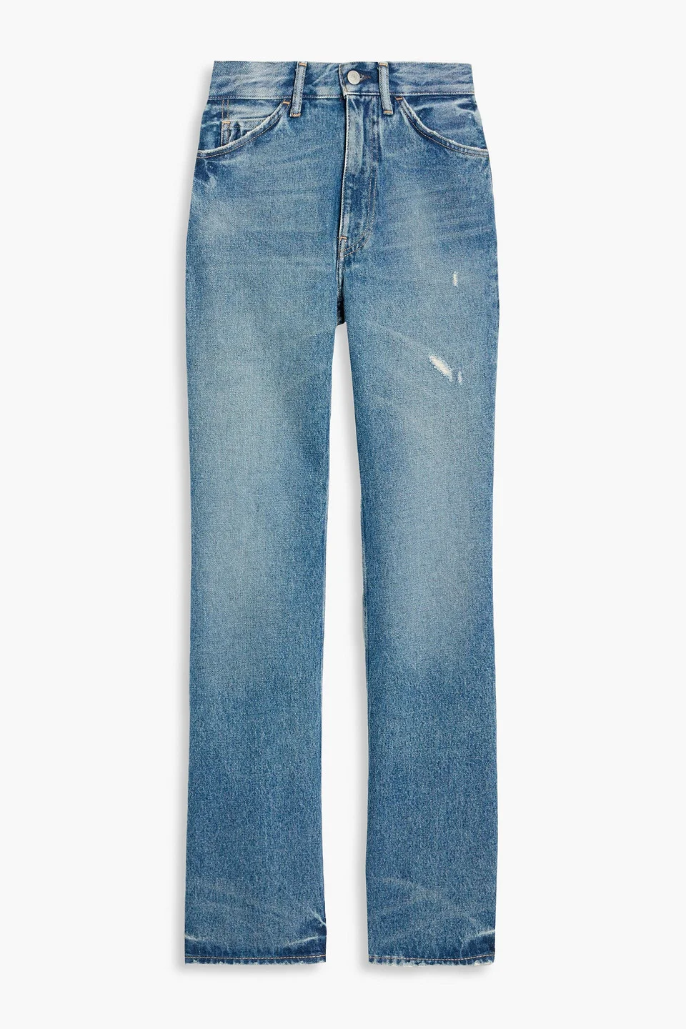 Straight-leg jeans denim distressed belt loops high-rise cut five pockets button and concealed zip fastening at front mid-weight, non-stretchy fabric machine wash or dry clean made in italy 100% Cotton Product Code 46376663163060581