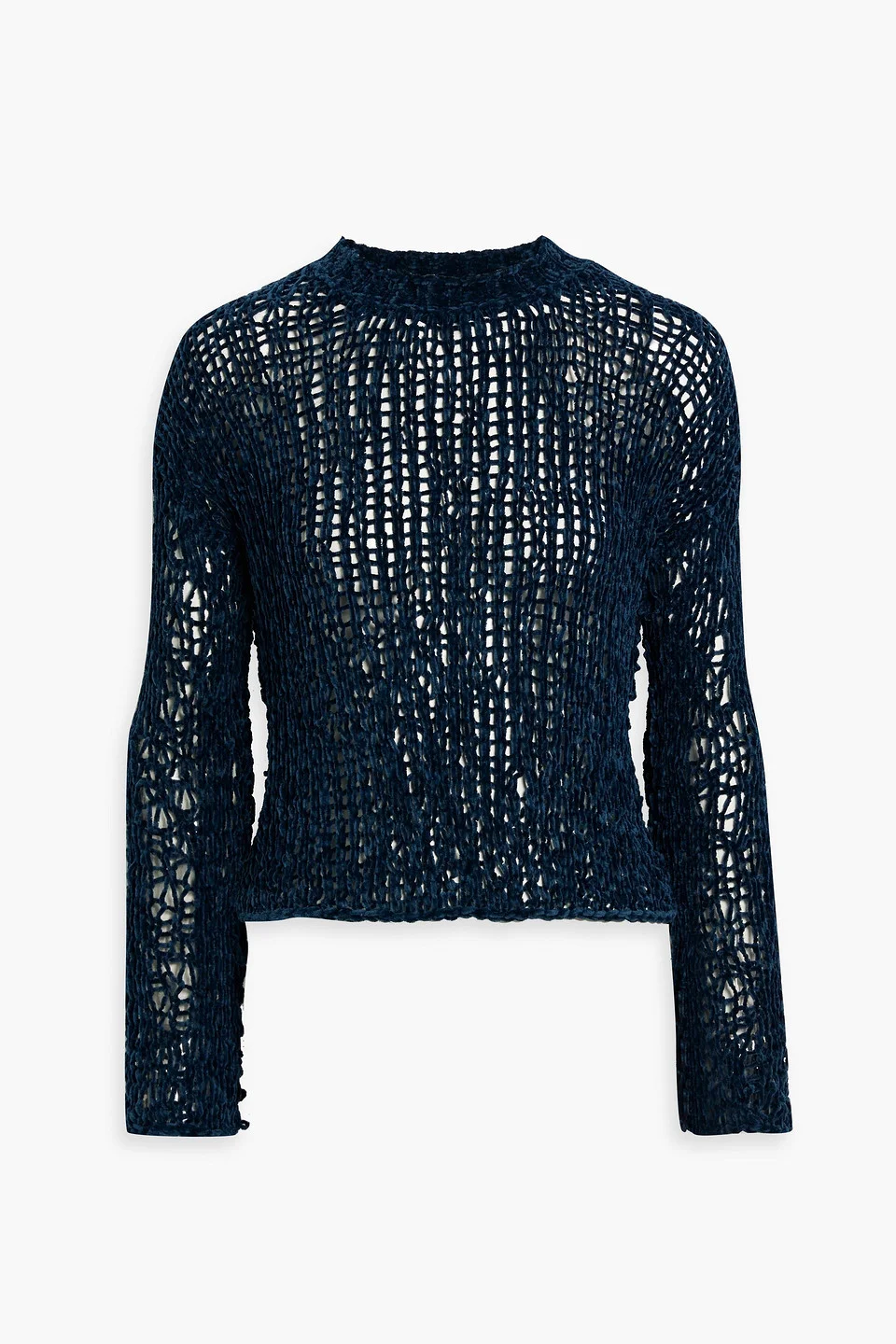 Sweater chenille ribbed trims slips on mid-weight open knit dry clean made in italy 100% Polyester Product Code 1647597356347740