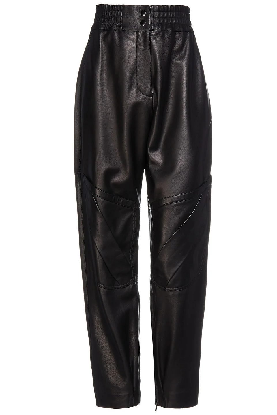Tapered pants leather pleated multipockets elasticated waist high-rise cut fully lined snap and concealed zip fastening at front supple, non-stretchy leather specialist clean imported 100% Lambskin Product Code 9679066508870111