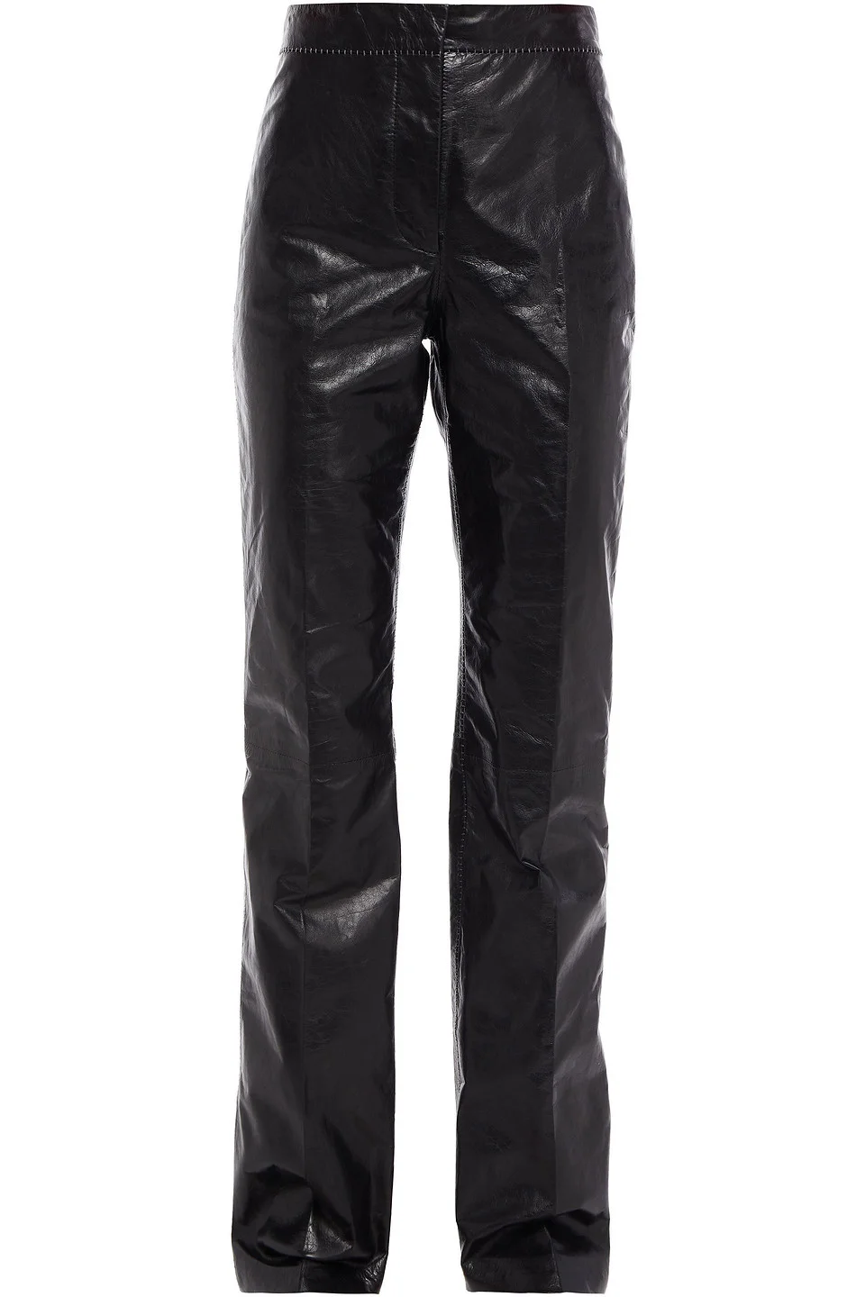 Straight-leg pants textured-leather topstitching pressed creases high-rise cut concealed hook, button and zip fastening at front non-stretchy fabric mid-weight fabric specialist clean imported 100% Calf-skin leather Product Code 25185454457018634