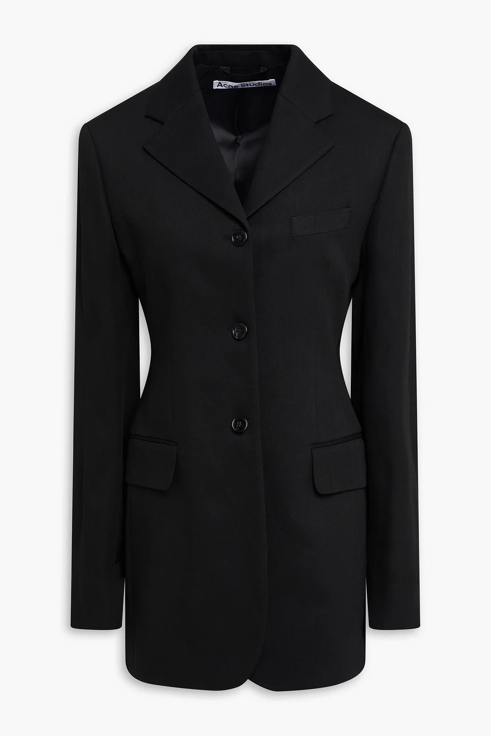 Blazer wool-blend buttoned cuffs front flap pockets breast pocket button fastenings through front fully lined back vent mid-weight, non-stretchy fabric dry clean imported 69% Wool 31% Viscose Product Code 46376663163025041