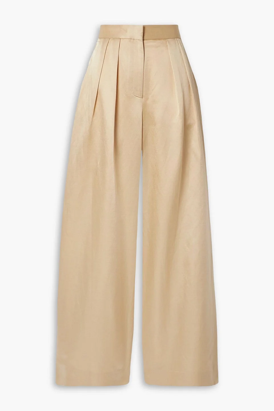 Wide-leg pants duchesse-satin pleated side slant pockets back welt pockets high-rise cut concealed hook, button and zip fastening at front mid-weight, non-stretchy fabric dry clean 43% Acetate 32% Linen 25% Cotton Product Code 1647597332135749