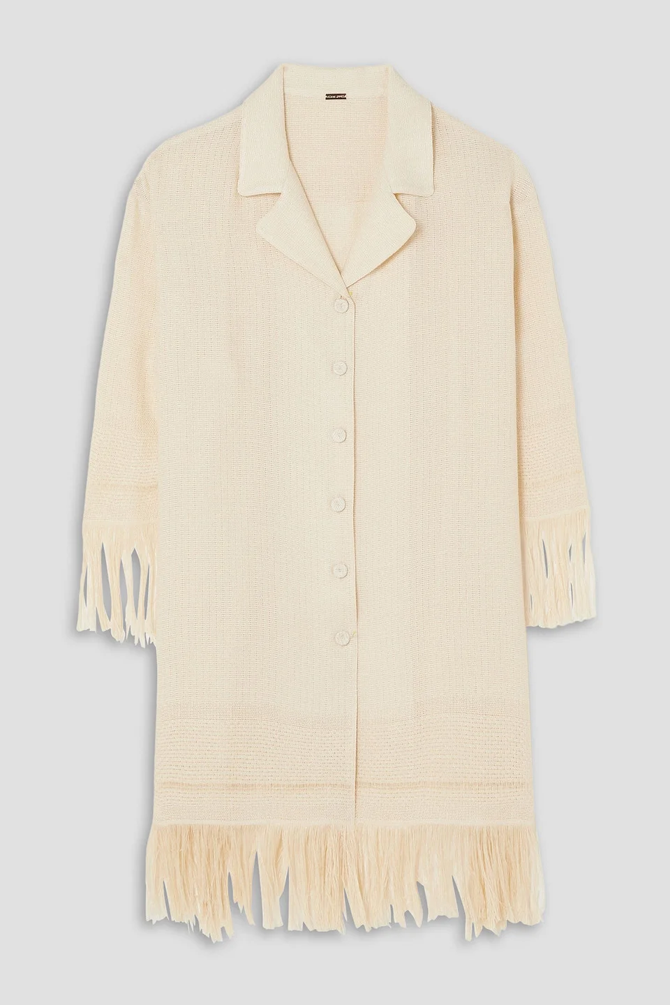 Shirt gauze fringed side splits button fastenings through front lightweight, non-stretchy fabric dry clean The neutral color of Adam Lippes' 'Siwa' shirt is inspired by the Great Sand Sea in the Sahara Desert. It's been cut from ecru gauze backed with airy linen and has dropped sleeves and swishy fringing. 45% Linen 32% Viscose 23% Silk Product Code 1647597303435632