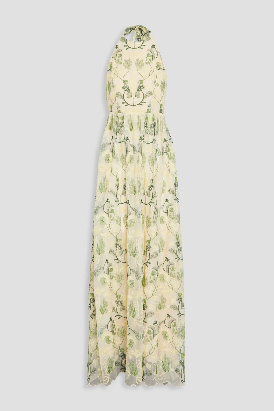 Dress tulle embroidered open back partially elasticated waist ties at neck fully lined lightweight, non-stretchy fabric hand wash or dry clean imported 100% Nylon Product Code 1647597359893098