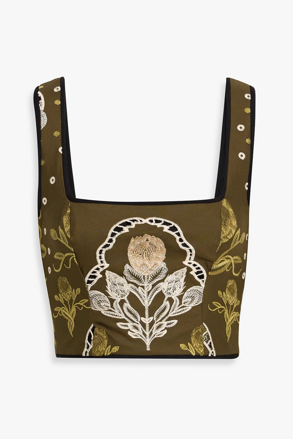 Amanda Relato cropped embroidered cotton-blend poplin bustier top