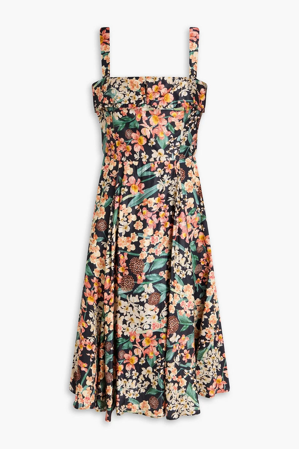 Dress floral-print satin linen and silk-blend ruffled trims fold-over elasticated shoulders concealed hook and zip fastening at back fully lined mid-weight, non-stretchy fabric machine wash or dry clean imported 70% Linen 30% Silk Product Code 46376663163085491