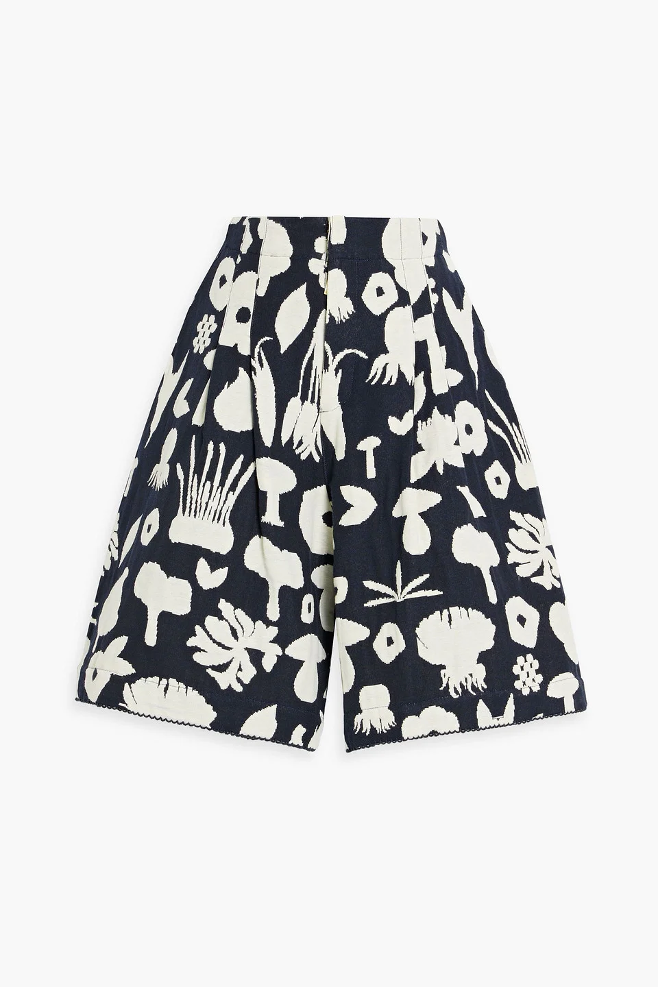Shorts jacquard cotton-blend pleated picot trims high-rise cut front slant pockets back welt pockets concealed hook and zip fastening at front mid-weight, non-stretchy fabric dry clean imported 83% Cotton 17% Polyester Product Code 46376663162864886