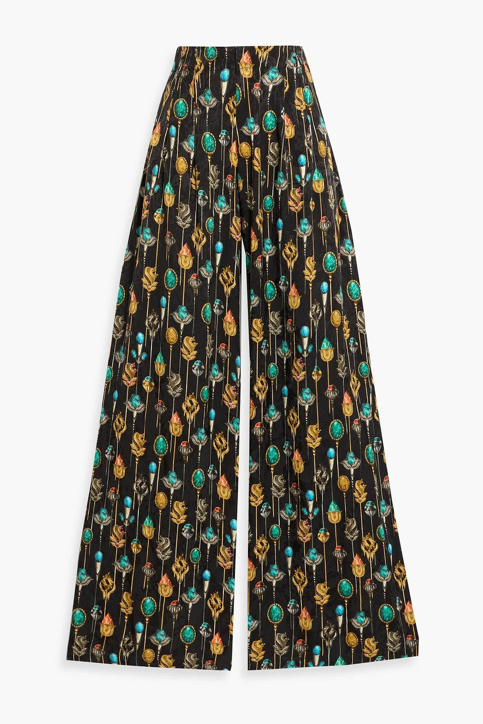 Wide-leg pants printed jacquard side slant pockets back welt pockets high-rise cut concealed hook and zip fastening at front mid-weight, non-stretchy fabric dry clean imported 100% Viscose Product Code 46376663163101701