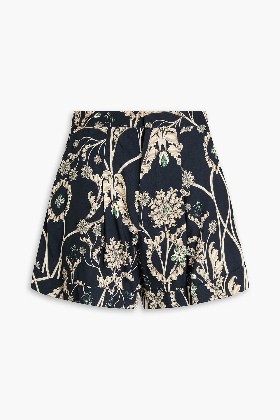 Shorts printed twill pleated high-rise cut side slit pockets folded cuffs concealed hook, button and zip fastening at front mid-weight, non-stretchy fabric machine wash or dry clean imported 68% Recycled viscose 32% Viscose Product Code 46376663163085787