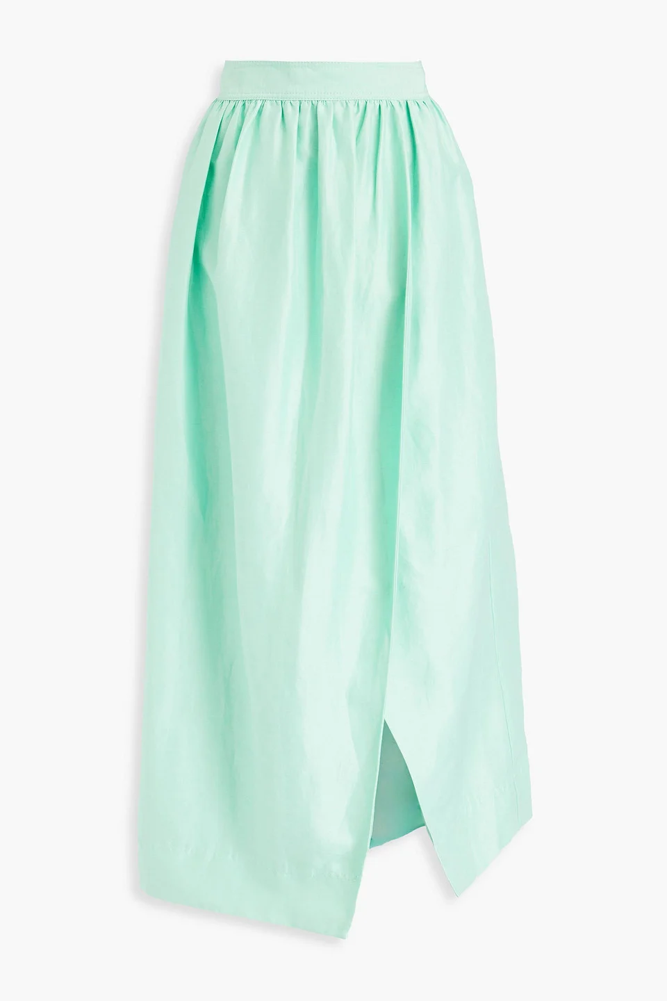 Skirt linen-blend wrap-effect two side slit pockets front split fully lined concealed hook and zip fastening at back mid-weight, non-stretchy fabric dry clean imported 69% Linen 31% Viscose Product Code 1647597336143375