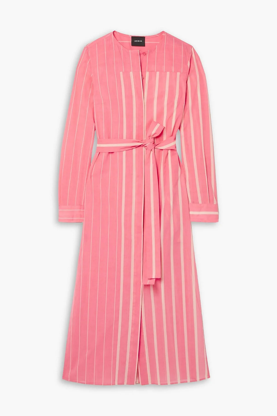 Shirt dress striped cotton-voile detachable waist tie buttoned cuffs concealed button fastenings through front non-stretchy fabric mid-weight fabric dry clean made in italy 100% Cotton Product Code 1647597322776564