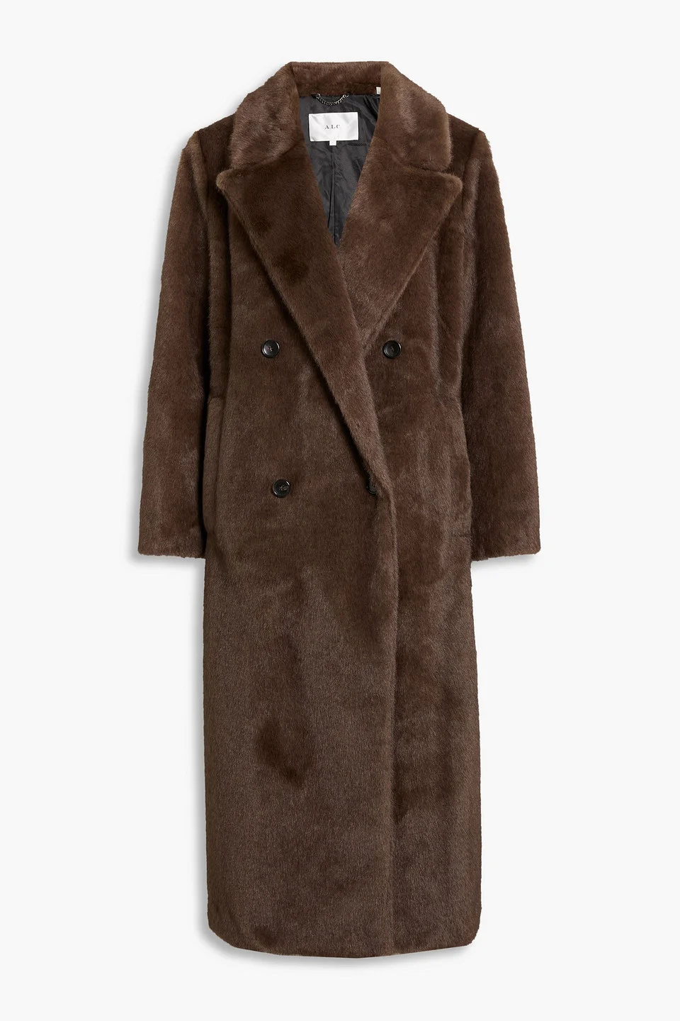Coat plush fabric front slant pockets back vent fully lined button fastening at double-breasted front weighted, non-stretchy fabric dry clean imported 100% Polyester Product Code 46376663162976414