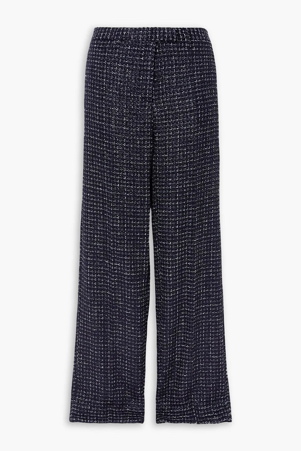 Straight-leg pants metallic tweed front slant pockets back welt pockets belt loops high-rise cut concealed hook, button and zip fastening at front mid-weight, non-stretchy fabric dry clean made in italy Add a little shine to your tailoring with Alessandra Rich’s pants. They’re made from tweed, flecked with shimmering yarn and sprinkled with tiny sequins to make the fabric even more interesting. Slip on a white tee with pointy pumps and get glowing. 87% Polyamide 13% Polyester Product Code 46376663162964409