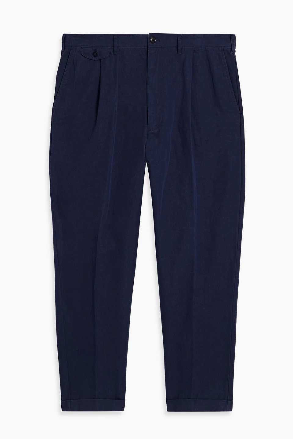 Pants cotton and linen-blend pleated two front slant pockets two back welt pockets belt loops folded cuffs button and concealed zip fastening at front mid-weight, non-stretchy fabric dry clean imported 57% Cotton 43% Linen Product Code 1647597358748551