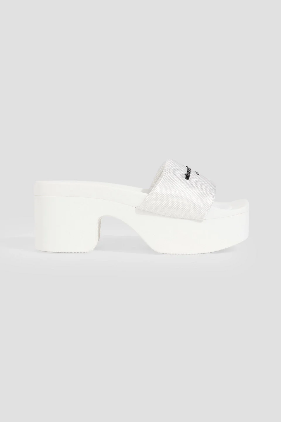 Mules canvas logo-embellished platform open square toe block heel slip on rubber sole imported 95% Polyester 5% Polyurethane Product Code 46376663163075566