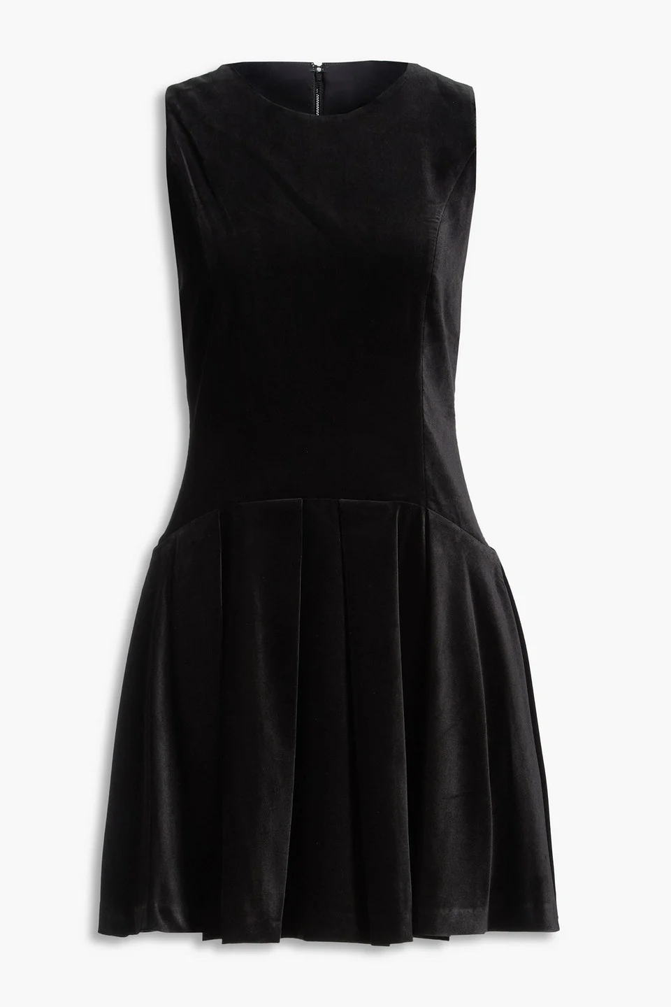Dress velvet pleated drop waist side slit pockets hook and zip fastening at back fully lined mid-weight, non-stretchy fabric dry clean imported 97% Micro polyester 3% Elastane Product Code 46376663163092594