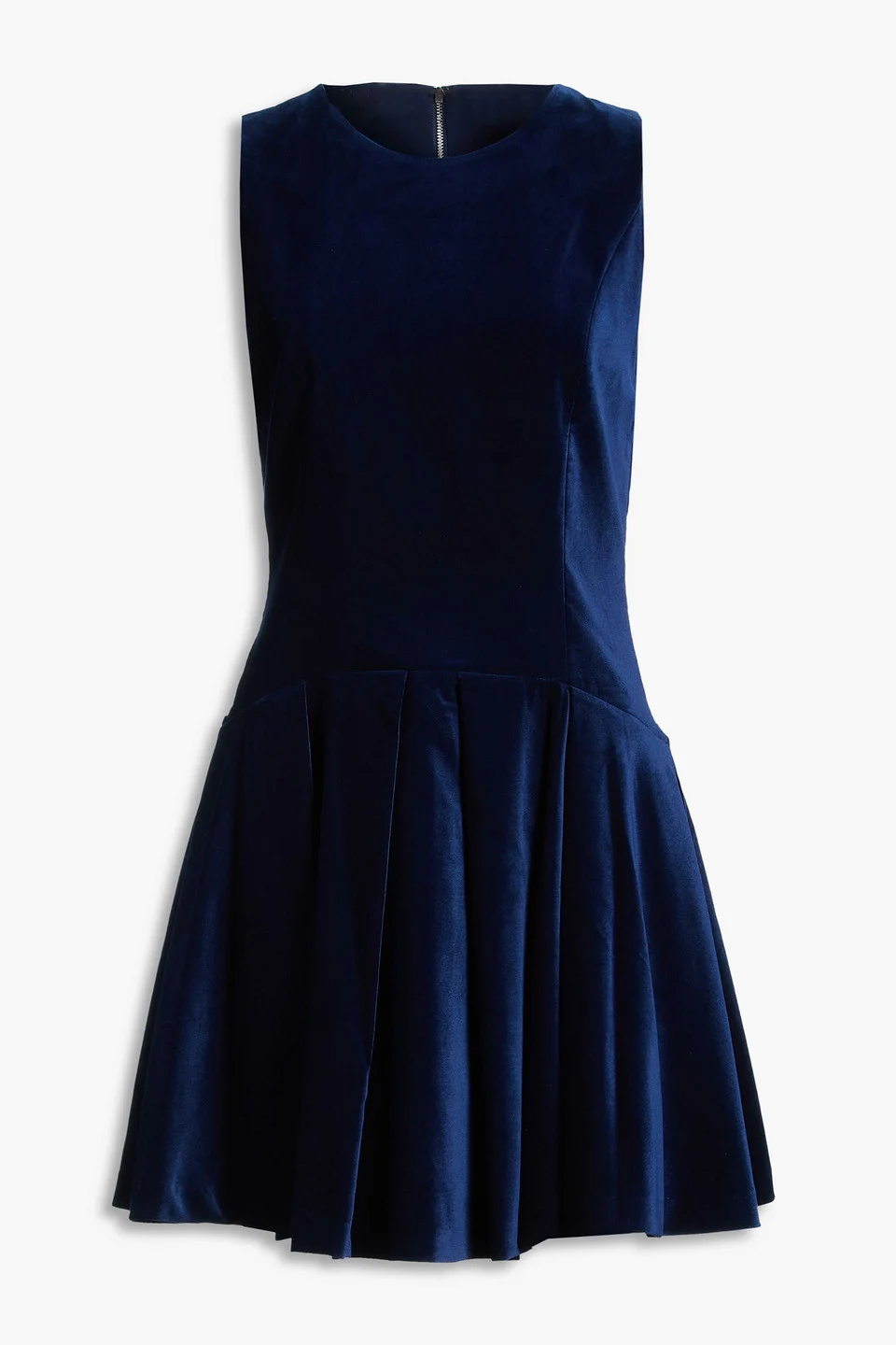 Dress velvet pleated drop waist side slit pockets hook and zip fastening at back fully lined mid-weight, non-stretchy fabric dry clean imported 97% Micro polyester 3% Elastane Product Code 46376663163092589