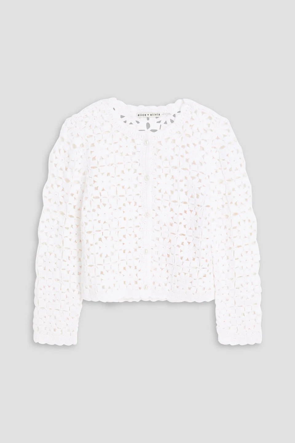 Cardigan crochet cotton-blend cropped scalloped trims button fastenings through front mid-weight knit dry clean imported Get ready to elevate your style with Alice + Olivia’s ‘Anderson’ cardigan. Made from a soft cotton blend with charming scalloped trims, it’s perfect for layering on breezy days. Wear it with a flowy dress or high-waisted jeans for a chic look. 60% Cotton 40% Acrylic Product Code 1647597358940998