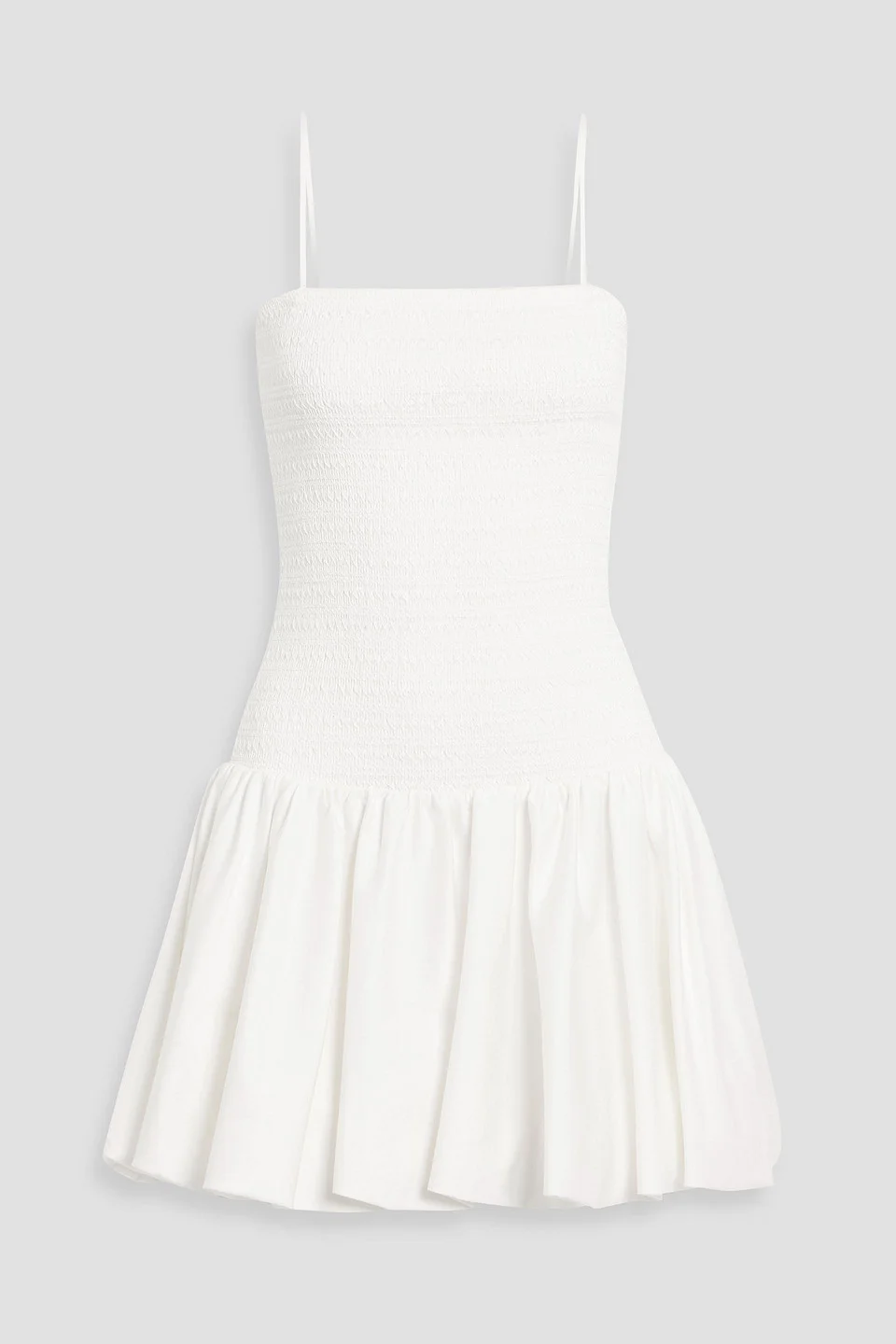 Dress cotton-blend poplin shirred detachable shoulder straps drop waist side slant pockets zip fastening along back mid-weight, slightly stretchy fabric dry clean imported Alice + Olivia's mini dress feels especially fresh in white. Cut from cotton-blend poplin, the drop-waist silhouette is shirred through the bodice and has a sweet bubble hem. Just add strappy sandals and a mini bag for al fresco lunches. 97% Cotton 3% Elastane Product Code 46376663163128690