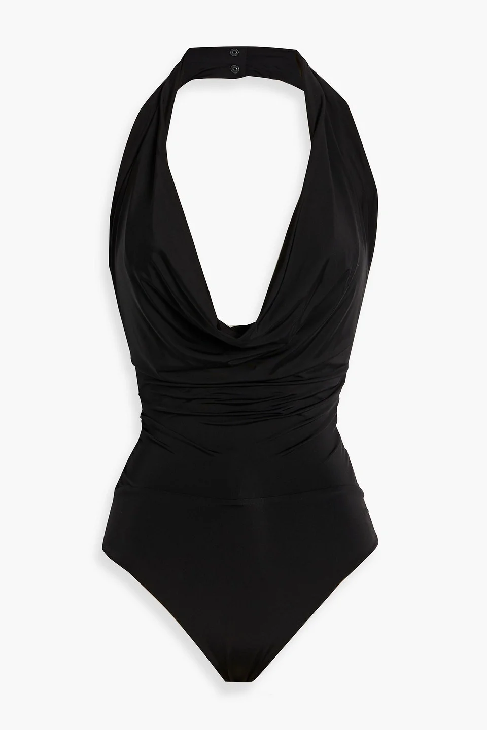 Bodysuit stretch-jersey draped snap fastenings at neck snap fastenings at base fully lined mid-weight, stretchy fabric dry clean imported 90% Viscose 10% Elastane Product Code 46376663163014368