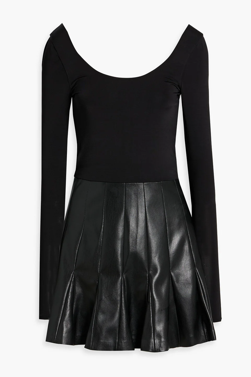 Dress jersey synthetic material paneled pleated zip fastening along back mid-weight, non-stretchy fabric dry clean imported 100% Polyurethane Product Code 46376663162995979