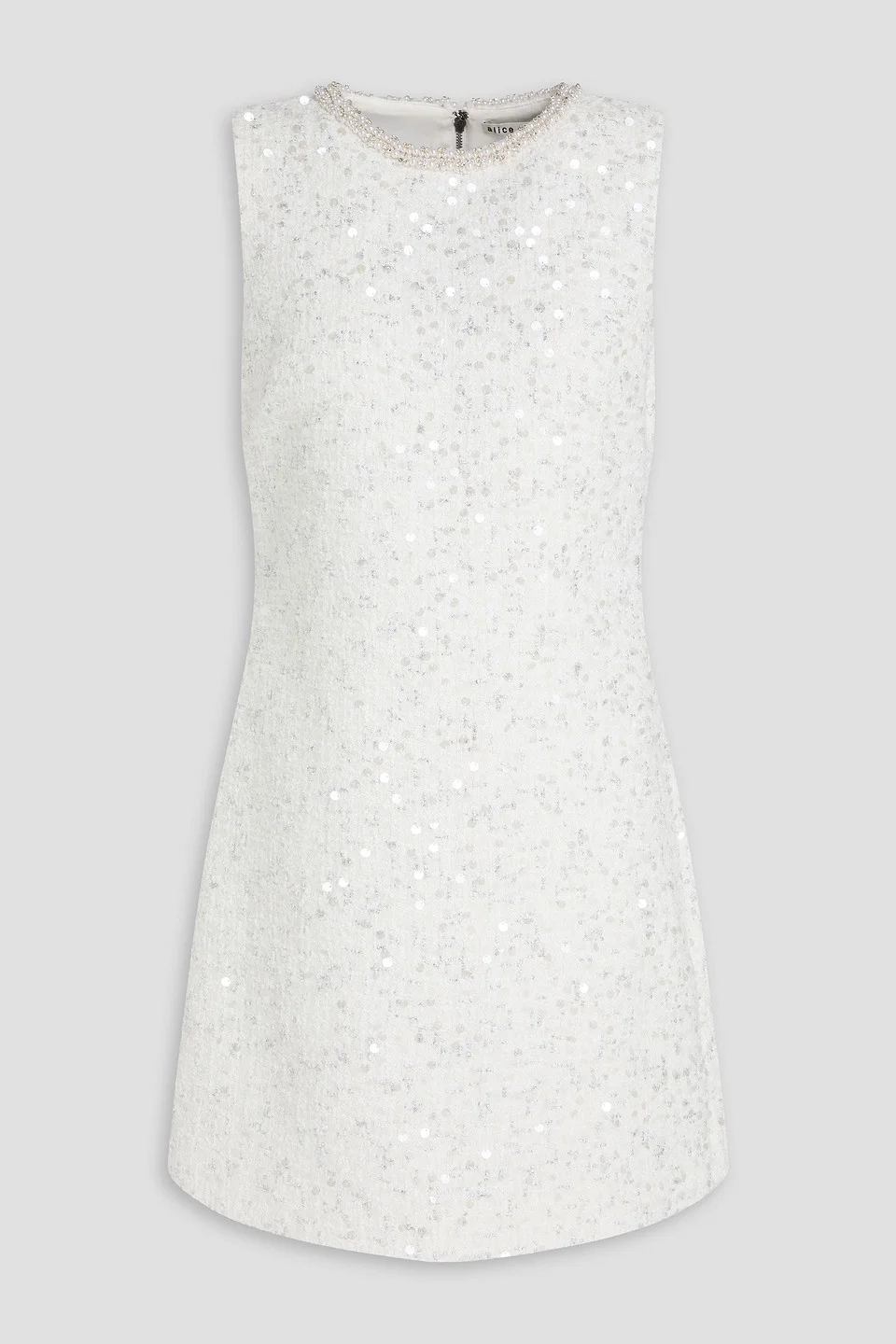 Dress metallic boucle-tweed sequins crystals hook and zip fastening at back fully lined mid-weight, non-stretchy fabric dry clean imported There’s so much to love about this Alice + Olivia's 'Coley' mini dress. Made from a metallic boucle-tweed with sequins and crystals, it’s a true showstopper. Wear it with heels and a clutch for your next cocktail party. 100% Polyester Product Code 46376663162939490