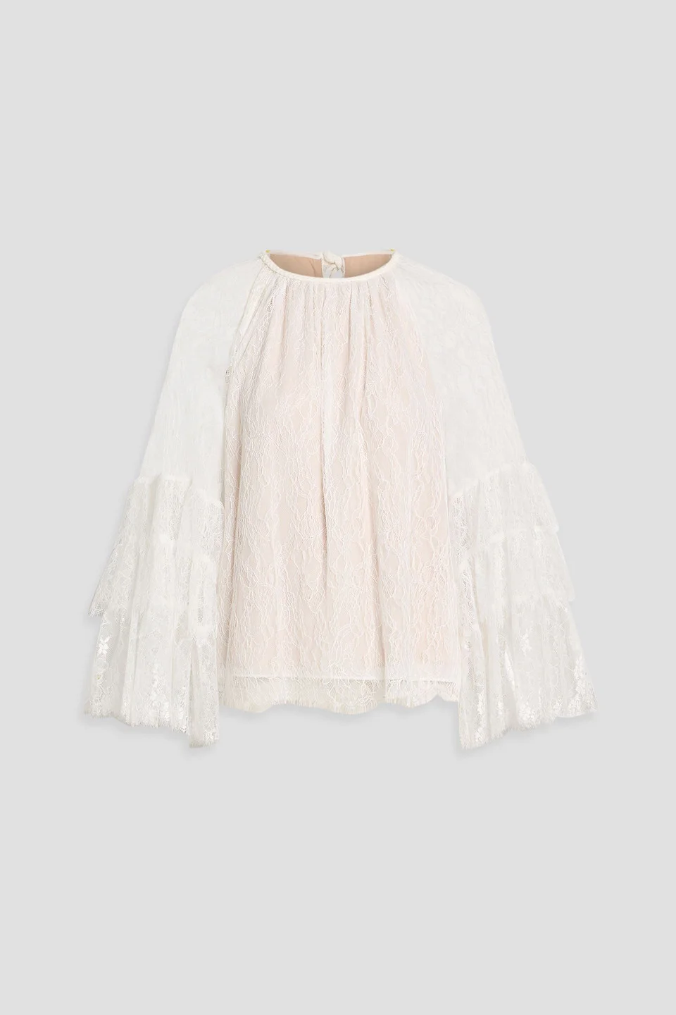 Top lace braided trims scalloped trims tiered sleeves tie-fastening keyhole at back partially lined lightweight, slightly stretchy fabric dry clean imported 100% Nylon Product Code 46376663163045946