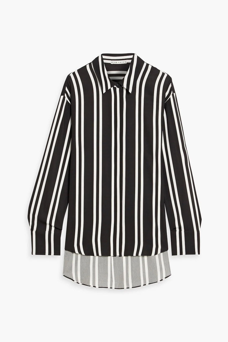 Shirt striped crepe de chine pleated back buttoned cuffs dipped back hem partially concealed button fastenings through front mid-weight, non-stretchy fabric dry clean imported 100% Viscose Product Code 46376663163075593