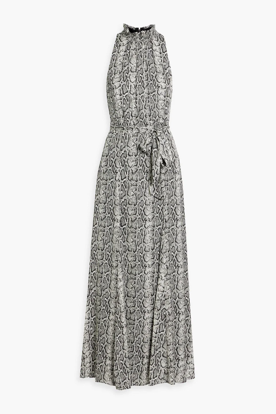 Dress snake-print crepe de chine shirred trims ruffled trims detachable waist tie elasticated waist zip fastening along back fully lined lightweight, non-stretchy fabric dry clean imported Get ready to turn heads in Alice + Olivia’s 'Dita' maxi dress. Made from lightweight crepe de chine with a chic snake-print design and ruffled trims, it’s perfect for making a statement. Wear it with strappy sandals and a bold lip for your next dinner party. 100% Viscose Product Code 46376663162850310