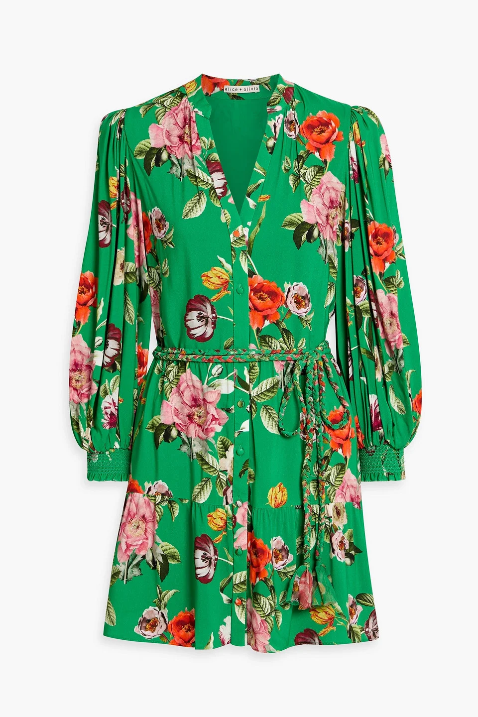 Dress floral-print crepe de chine detachable waist tie button fastenings through front mid-weight, non-stretchy fabric dry clean imported 100% Viscose Product Code 46376663163075305